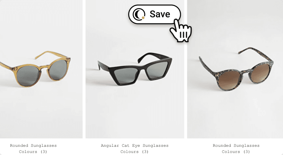 With the universal save button pinned to your toolbar, no matter what website you're browsing, you can save products via the Moonsift icon in your toolbar.